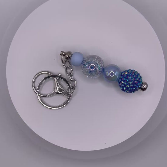 Add a splash of fun to your keys with this playful beaded keychain. Featuring shiny silver hardware and catchy blue beads, it’s the perfect little accessory to brighten your day every time you grab your keys! Compact and cheerful, it makes unlocking a joyful moment.