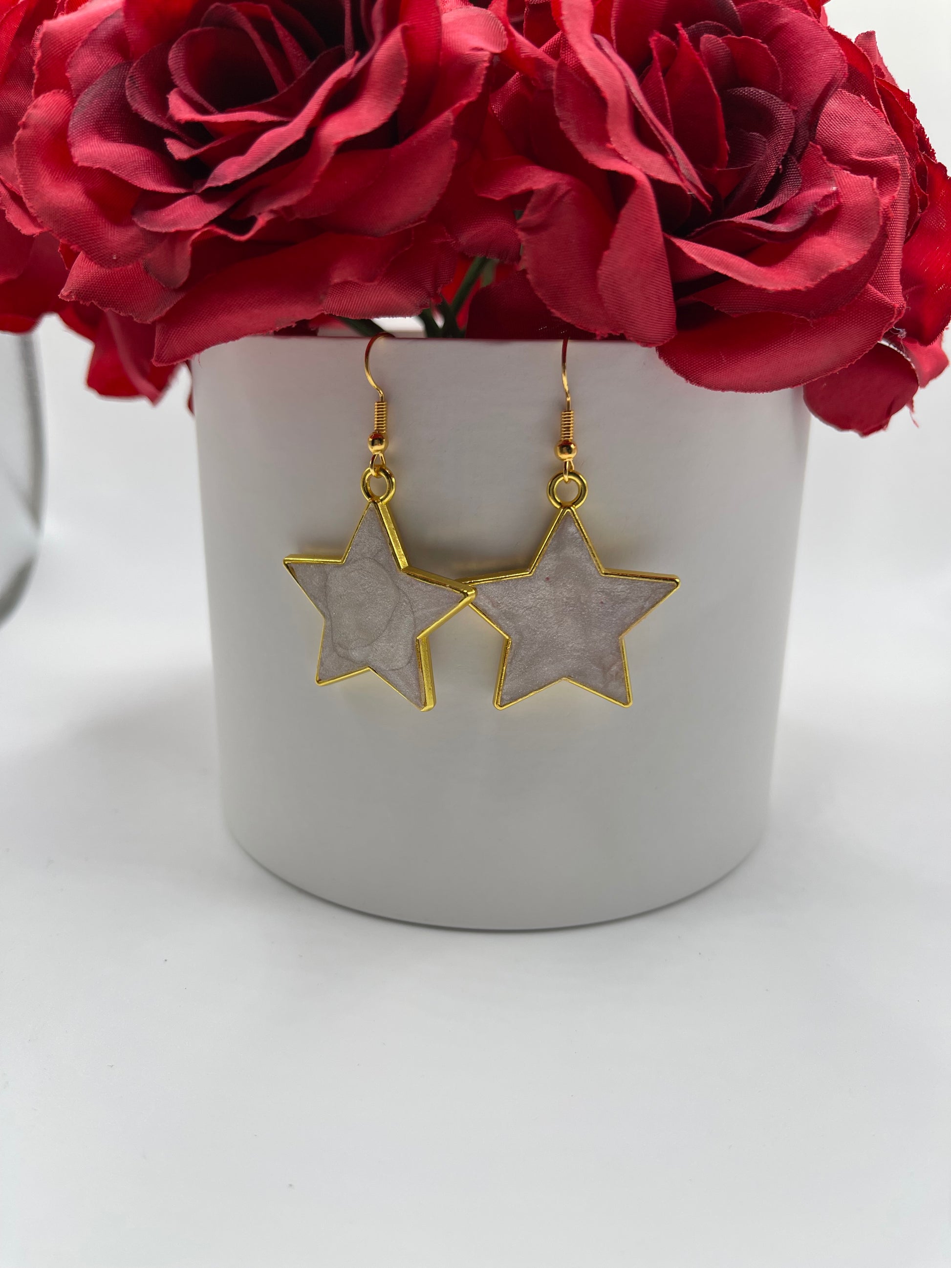 Add a touch of whimsy to your style with these Polymer Clay Inlay Star Earrings. Featuring a charming star-shaped frame with shimmering clay inlay, these dangle earrings effortlessly brighten any outfit. Perfect as a playful gift or a fun treat for yourself, they bring a sparkly pop wherever you wear them. Lightweight and eye-catching, they’re ready to dance through your day with you!