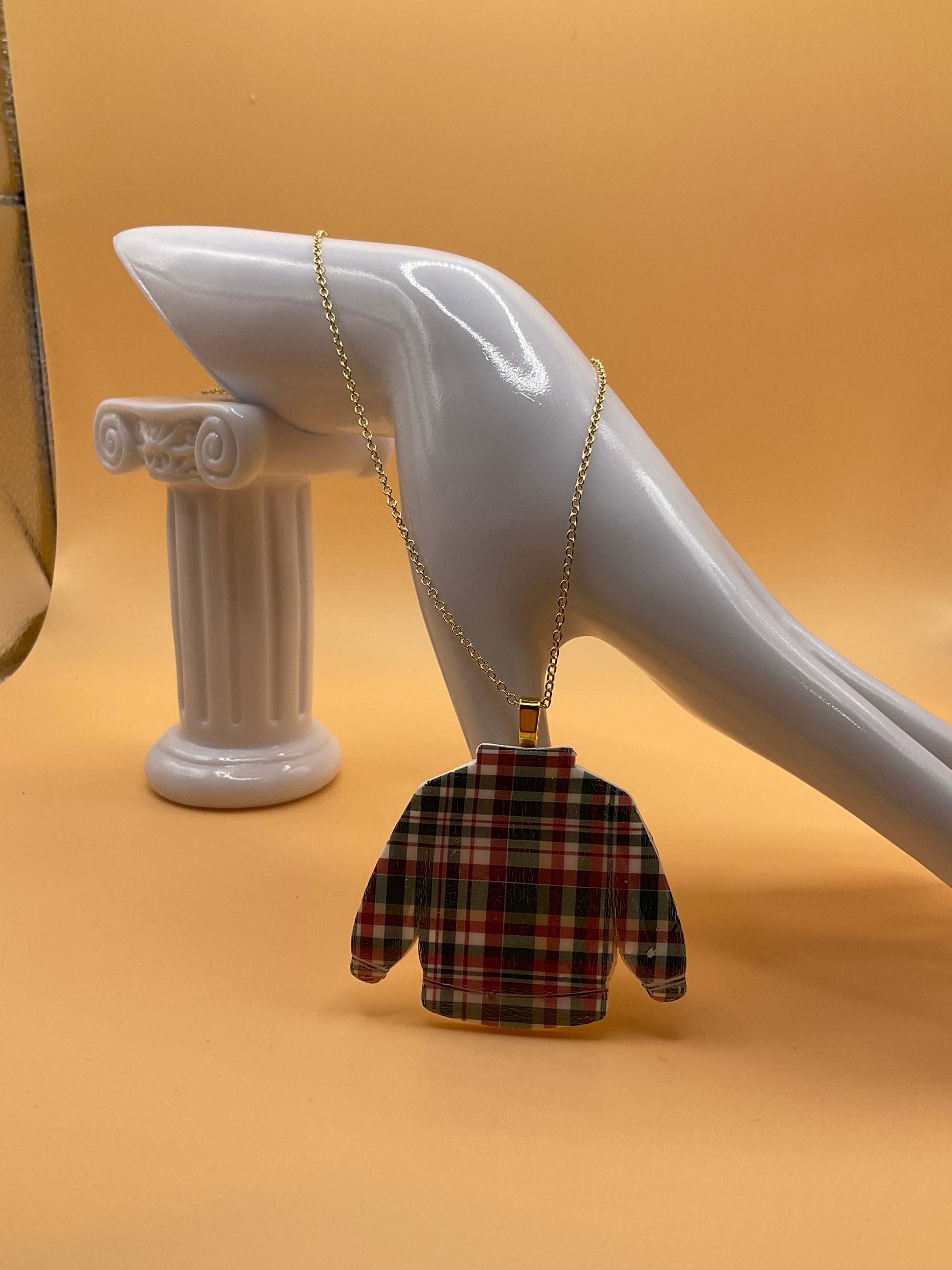 Plaid Ugly Sweater Pendant With Chain | Sweater Necklace